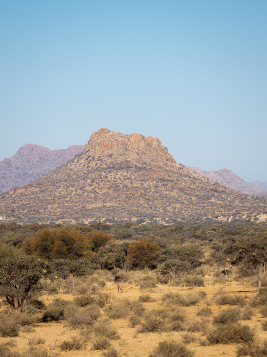 Dann geht es hoch in die Berge, die verhältnismäßig klein aussehen, wenn man bedenkt, dass sie auf fast 2000 meter Höhe liegen. Das liegt daran, das Krumhuk schon auf einer Höhe von etwa 1800 meter liegt. Hier in den Bergen soll es Zebras geben. Wir haben einen wunderschönen Ausblick über die ruhende Landschaft.