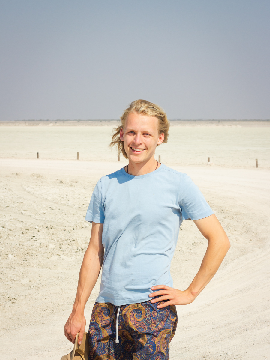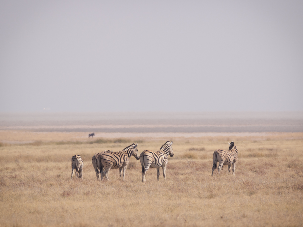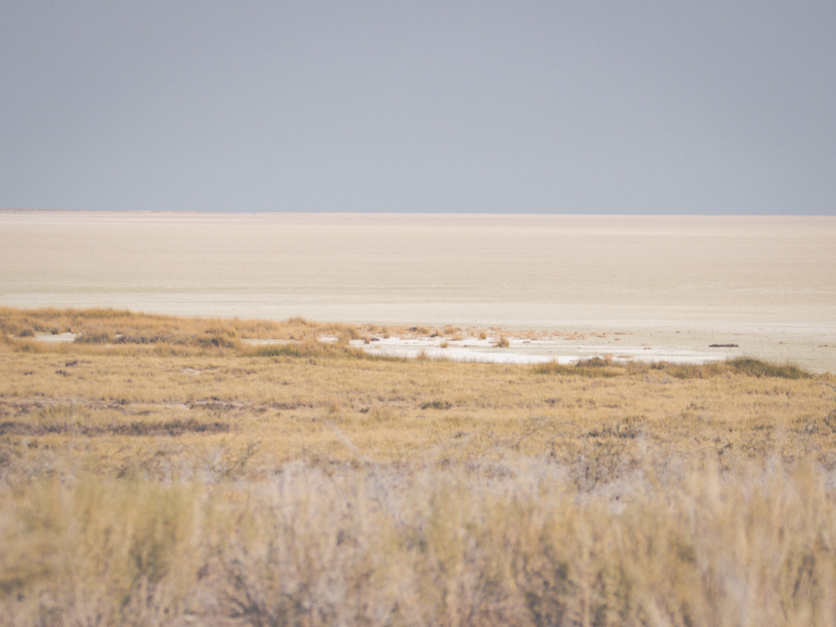 Am nächsten Tag geht es für uns zu einem Etosha Outlook. Dieses reicht wie ein langer Steg in die Salzpfanne hinein und dort bleiben wir einige Stunden. Wir geniessen die Stille und die Weite. Die Salzpfanne liegt gleissend hell im Sonnenlicht da. Es ist ein starker Kontrast zu der Farbe des Himmels. Man könnte meinen, da hinten am Horizont, läge das Ende der Welt.