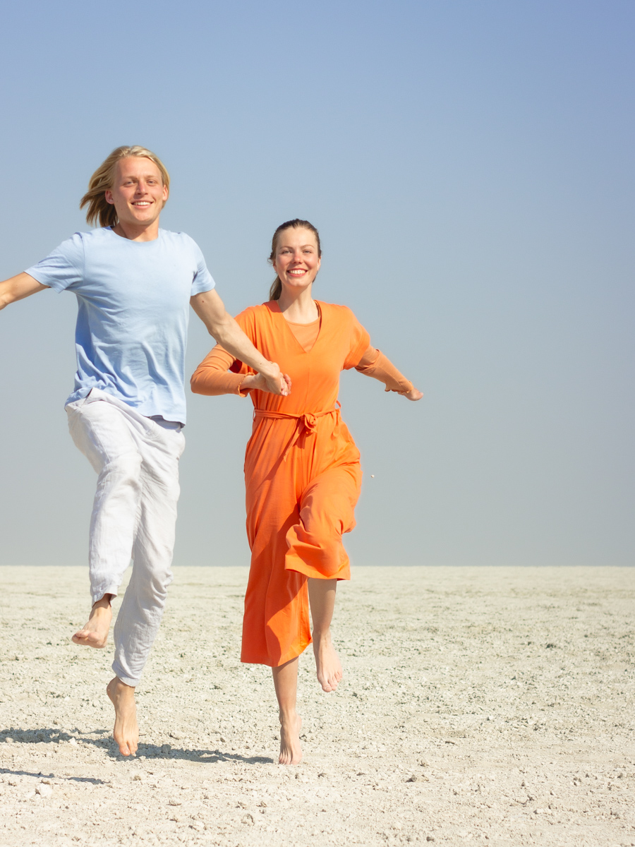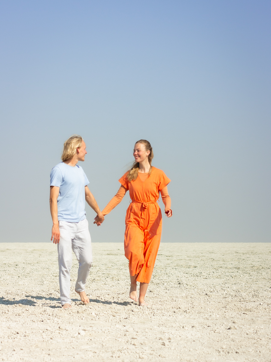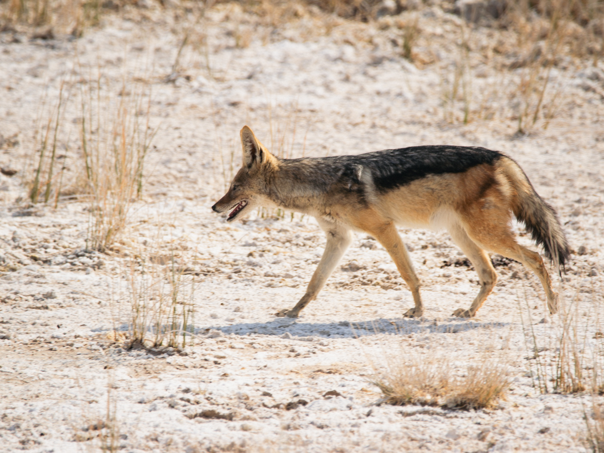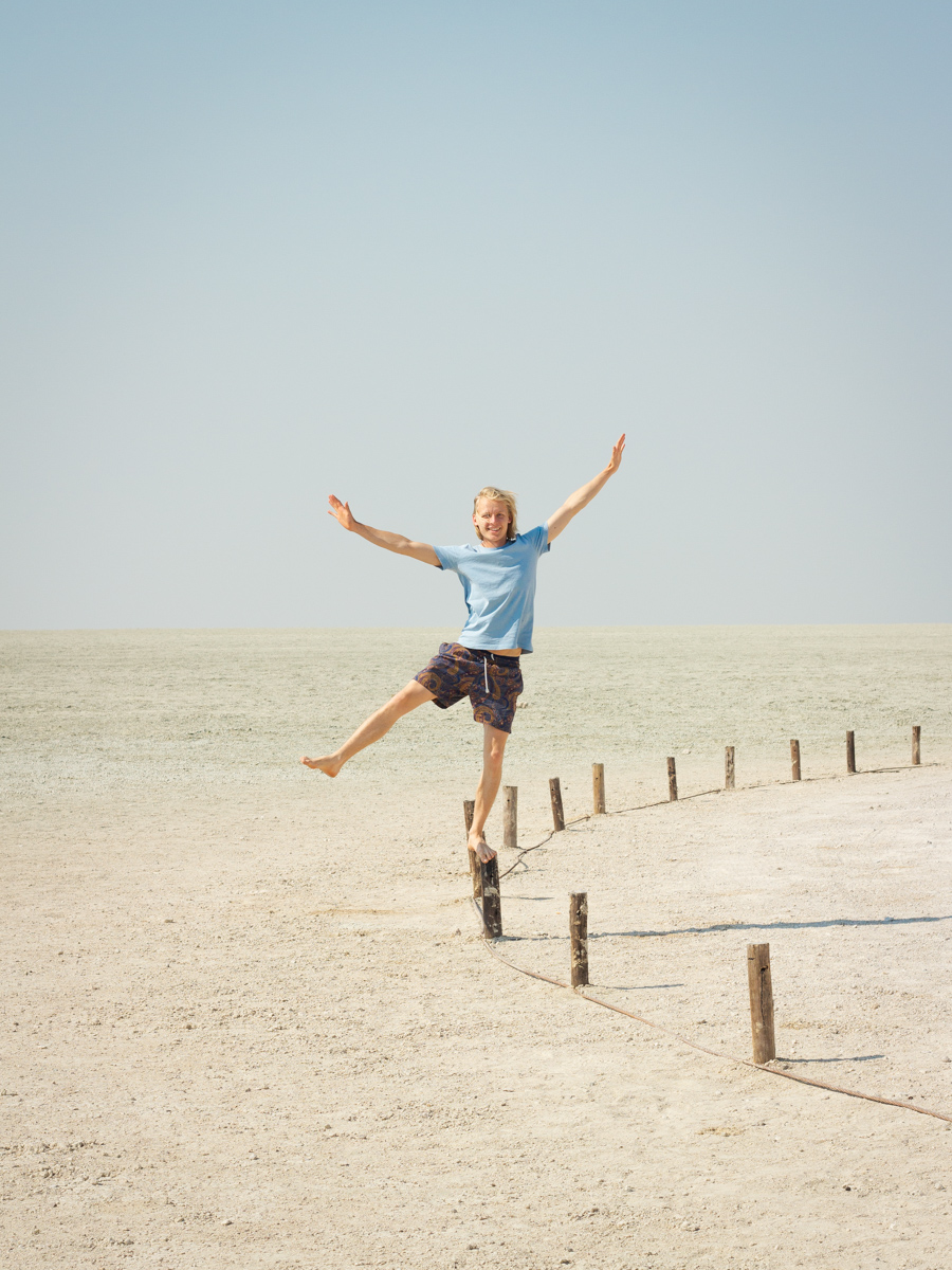 Am nächsten Tag geht es für uns zu einem Etosha Outlook. Dieses reicht wie ein langer Steg in die Salzpfanne hinein und dort bleiben wir einige Stunden. Wir geniessen die Stille und die Weite. Die Salzpfanne liegt gleissend hell im Sonnenlicht da. Es ist ein starker Kontrast zu der Farbe des Himmels. Man könnte meinen, da hinten am Horizont, läge das Ende der Welt.