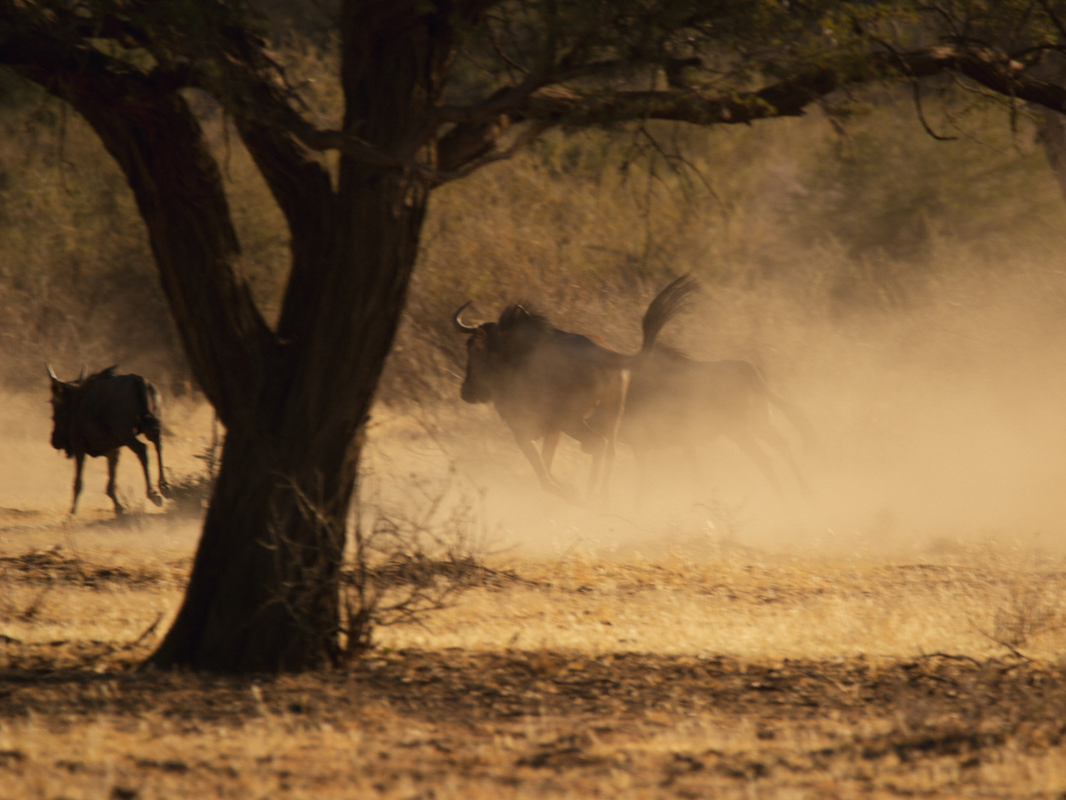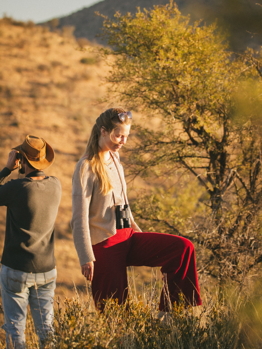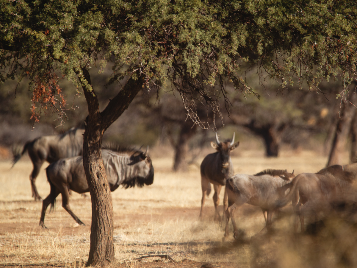Florian, der mit uns den Gamedrive machte, erzählte uns, dass die Fam Krumhuk sich mit den Nachbarfarmen darauf geeinigt hat, die Zäune für die Rinderherden niedrig zu halten, sodass die anderen Tiere frei durch das Land ziehen können. Das sorgt dafür das man sich in Dürrezeiten einerseits nicht um die Wildtiere zu kümmern braucht, die sonst Teil der Farm wären und das die Tiere andererseits ihrem normalen Herdenverhalten nachgehen können.